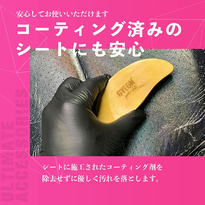 ●シートに施工されたコーティング剤を除去せずに優しく汚れを落とします。