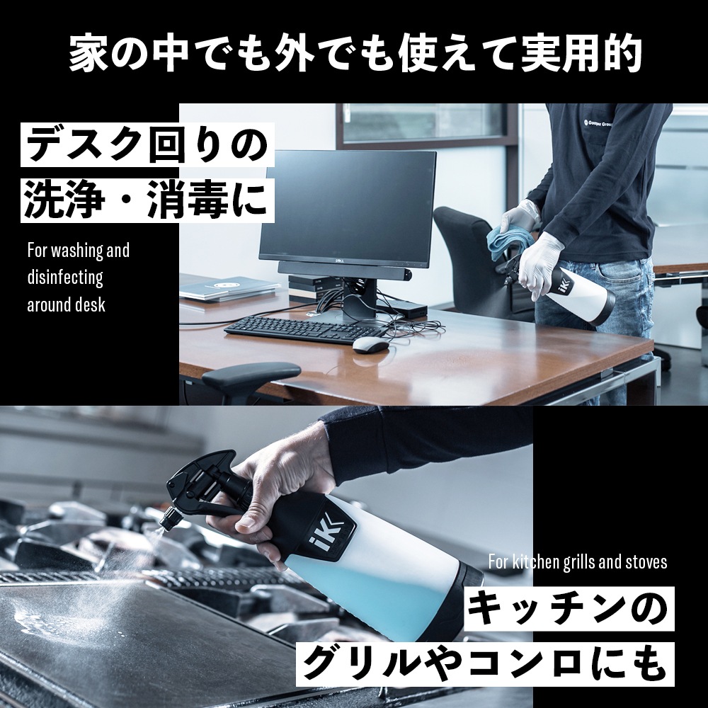 トリガースプレーIK MULTI TR1は、安全面と操作性において最高のパフォーマンスを備えたスプレーです。耐久性と汎用性があり、危険性の高い化学物質を扱う様々な分野(建設、洗浄と消毒、ウイルス除去、害虫と疫病の制御、自動車、産業、空調(HVAC)など)で専門的に使用するために設計されています。消毒剤、中性生成物、アルコール類、アルカリ性の製品およびケトンなど多種多様な化学物質を噴霧するために最適なツールです。安定性の高い土台、丈夫な半透明のタンクとレベル表示、調整可能なノズルで設計された軽くて便利なトリガースプレーです。