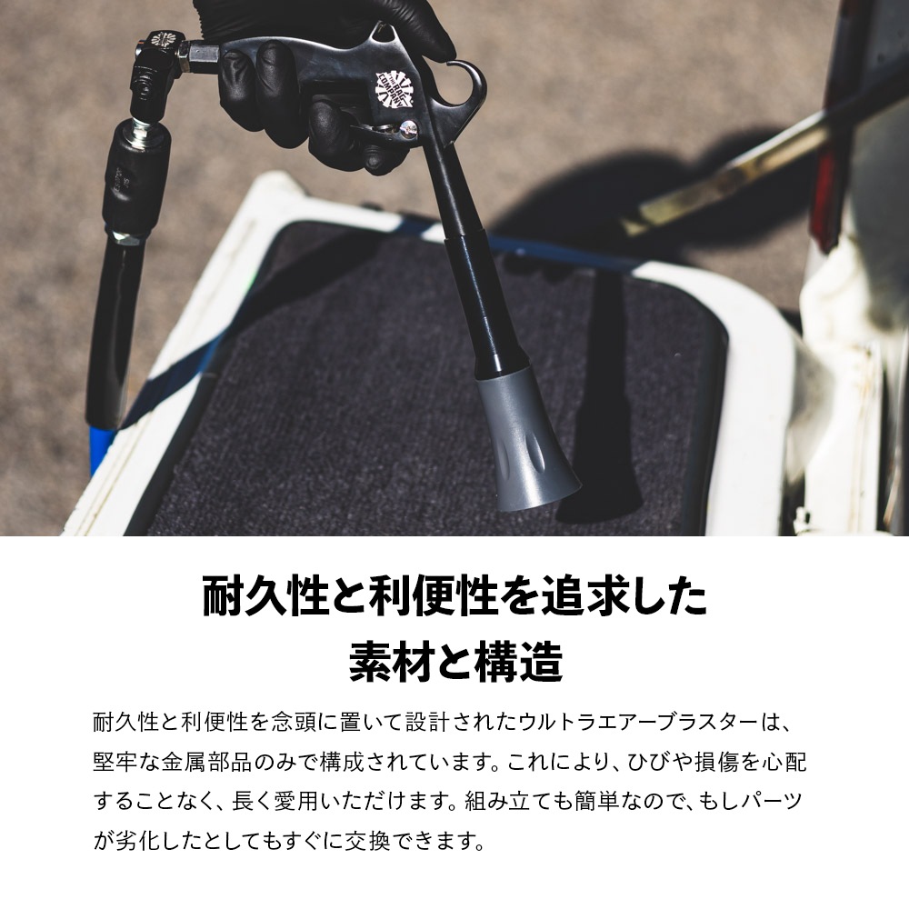 耐久性と利便性を念頭に置いて設計されたウルトラエアーブラスターは、堅牢な金属部品のみで構成されています。