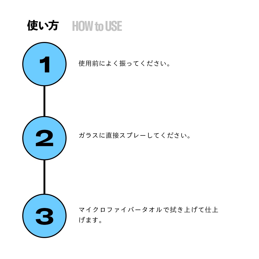 ※ガラス以外の部分に使用する場合は、目立たない箇所で一度テストしてからご使用ください。